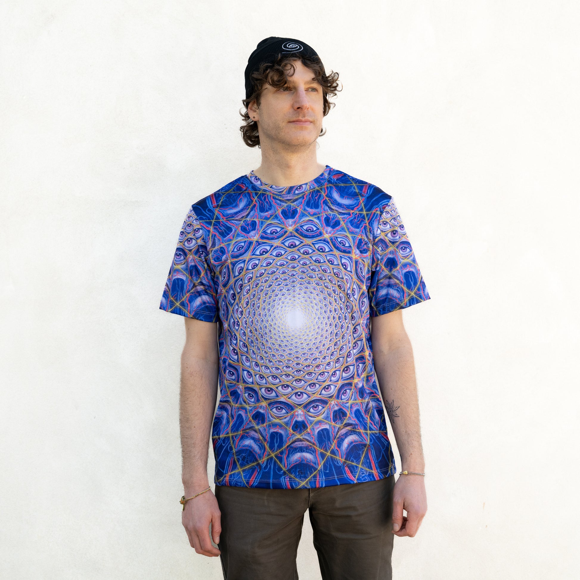 Built for long days, late nights, and everything in between. This all-over print dye-sub tee is made to move with you — from sunrise sets to crowded dance floors. Lightweight & breathable, it keeps you cool when the energy rises and comfortable when the night stretches on. Durable performance polyester holds color beautifully, so the artwork stays vivid through sweat, sun, and repeat wears. Throw it on for the festival, keep it on for the after.