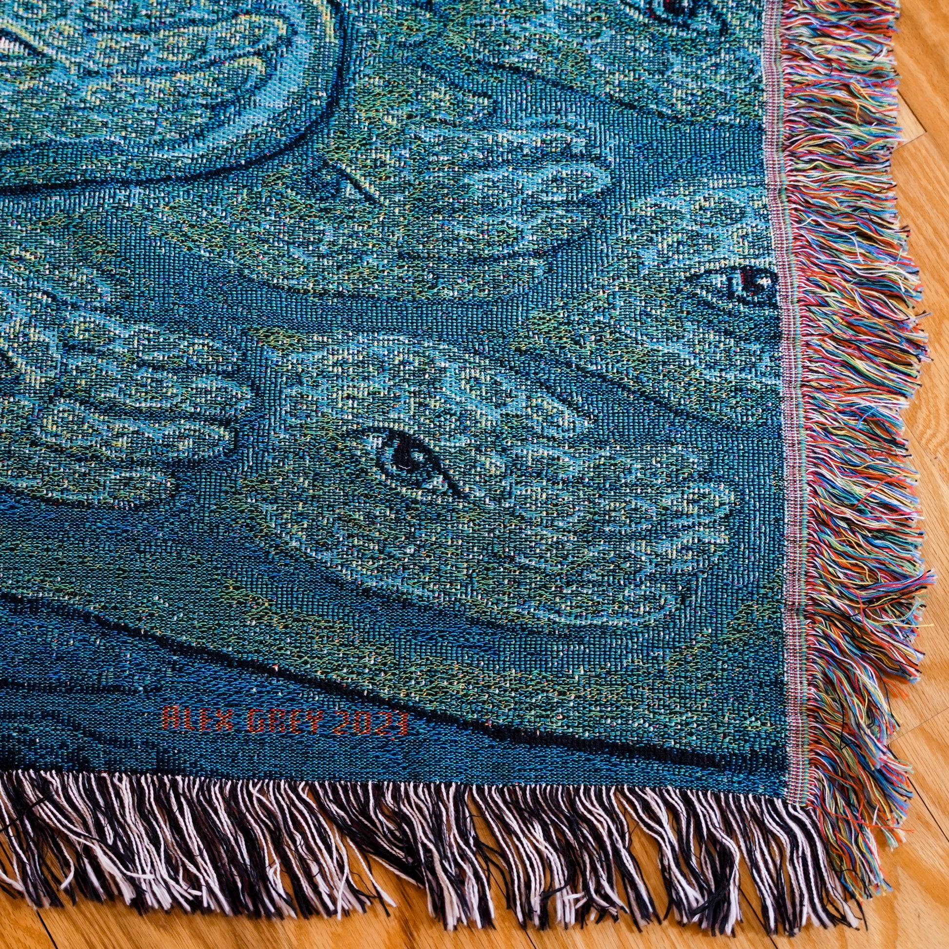 The Green Hand is a new piece that I have been working on for a number of years. This vision came when I was imagining humanity and all the different beings that work together to regenerate the ecosphere. Hildegard Von Bingen, the great 12th century Abbess, called it Viriditas, which is the greening power of God that regenerates in every season. It is this idea that we are part of the hands that are uplifting nature. -Alex Grey