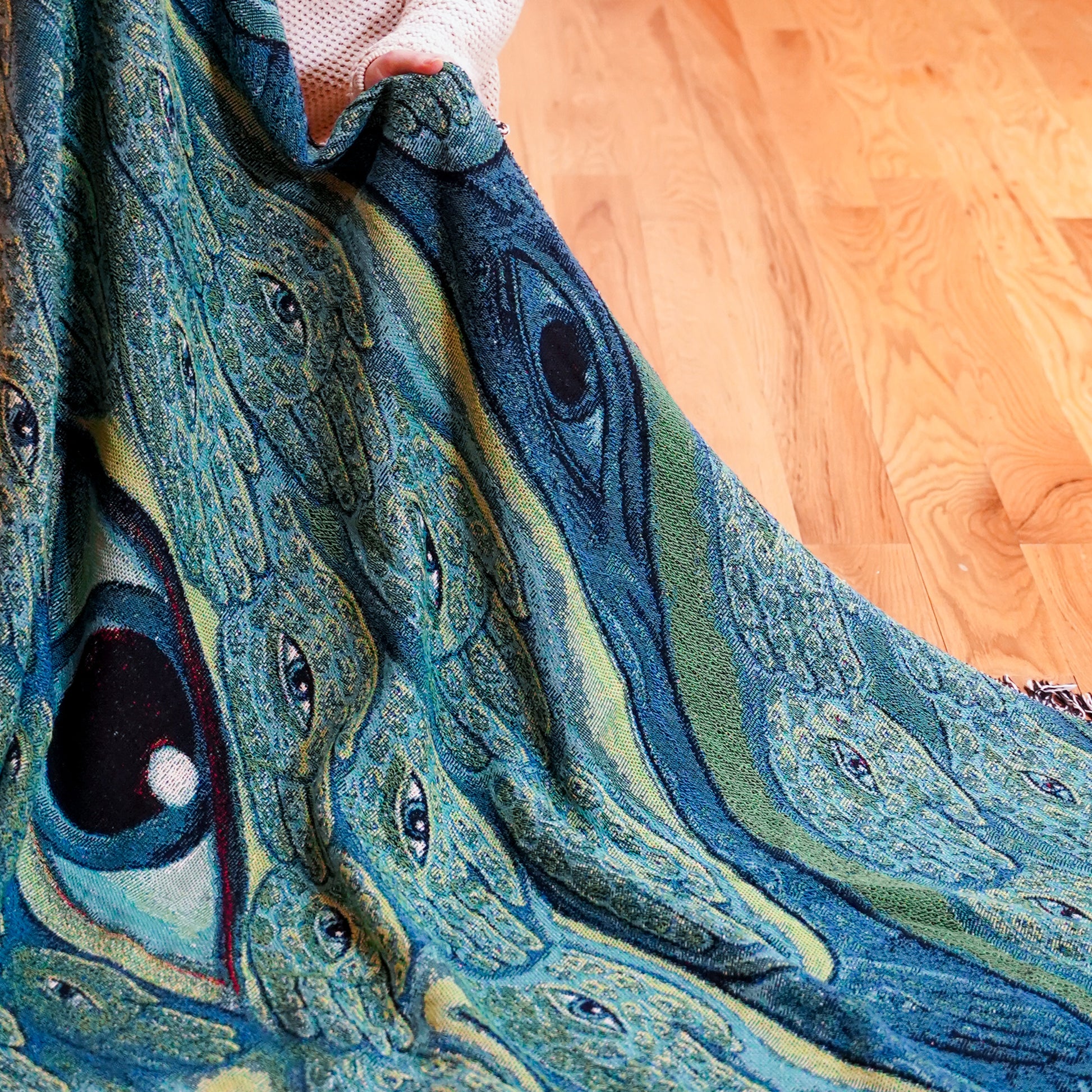 These cozy blankets are woven in the U.S. using 100% recycled cotton! We partner with a small mill here on the east coast of the US, and so there are only a limited number of blankets able to be woven per batch. Artists supporting farms & families: We hope you enjoy these blankets as much as we do!