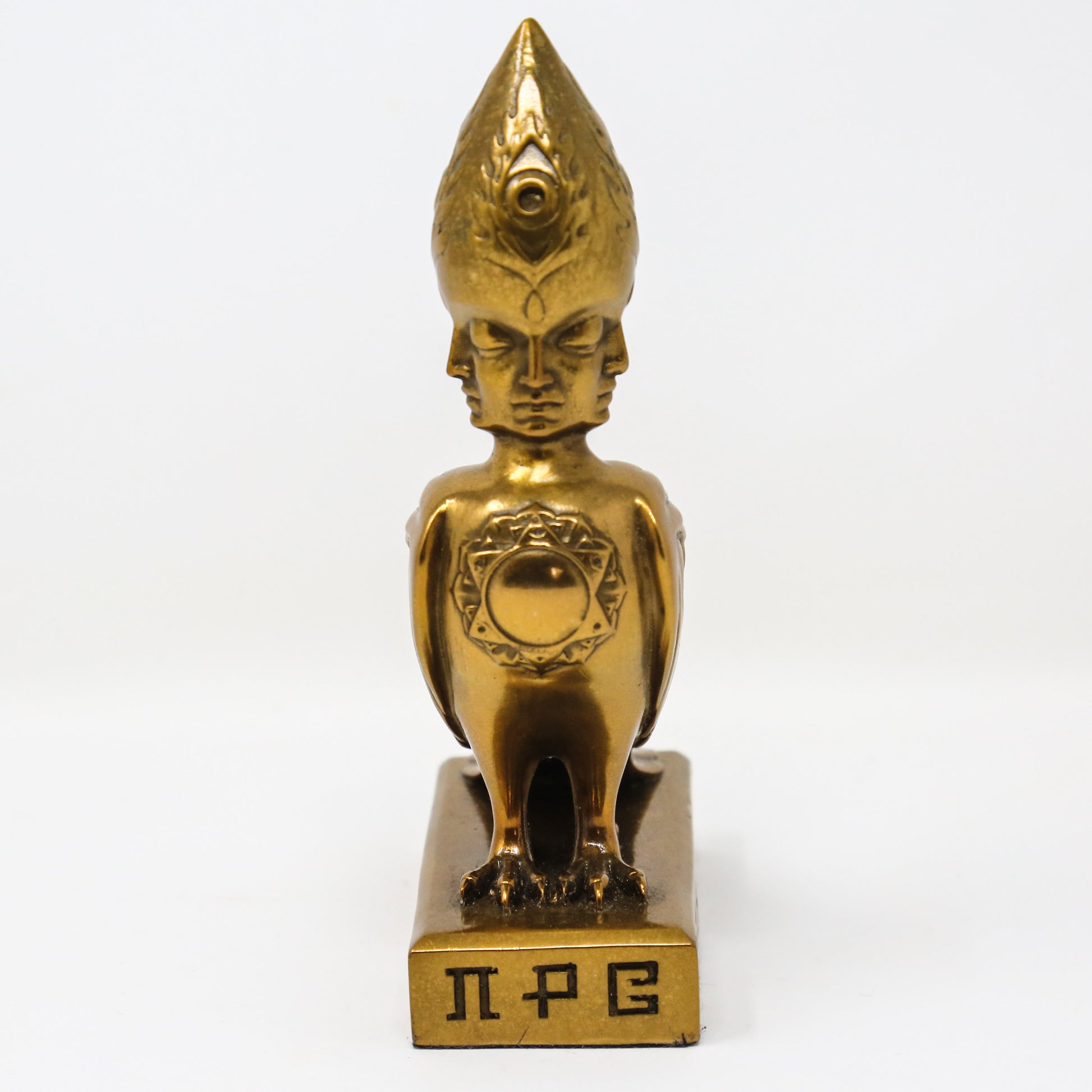 The soul and the winged angel are historically and archetypically fused. In Egyptian mythology the soul is associated with a human-headed bird called the Ba, which arises from the dying person as they release their final breath. This sculptural symbol combines the quad-faced angel with the body of a bird. Seeing in every direction at once indicated universal vision, the wings bearing eyes indicate the flight of higher consciousness.