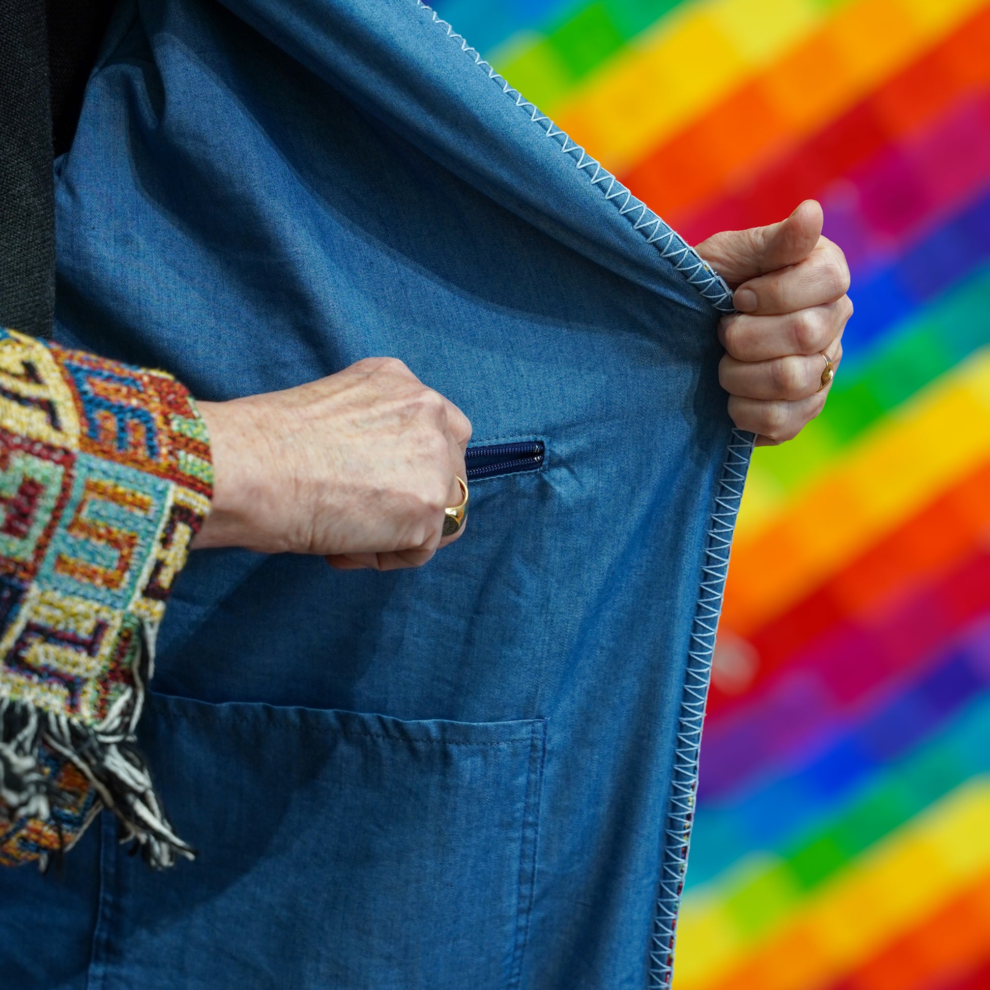 Each piece as unique as the individual who wears it. Handcrafted in collaboration with designer Sacred Imagination, each piece in this collection is a one-of-a-kind creation. Meticulously made with care, no two items are alike. Variations in patterns and coloration in logos are to be expected.