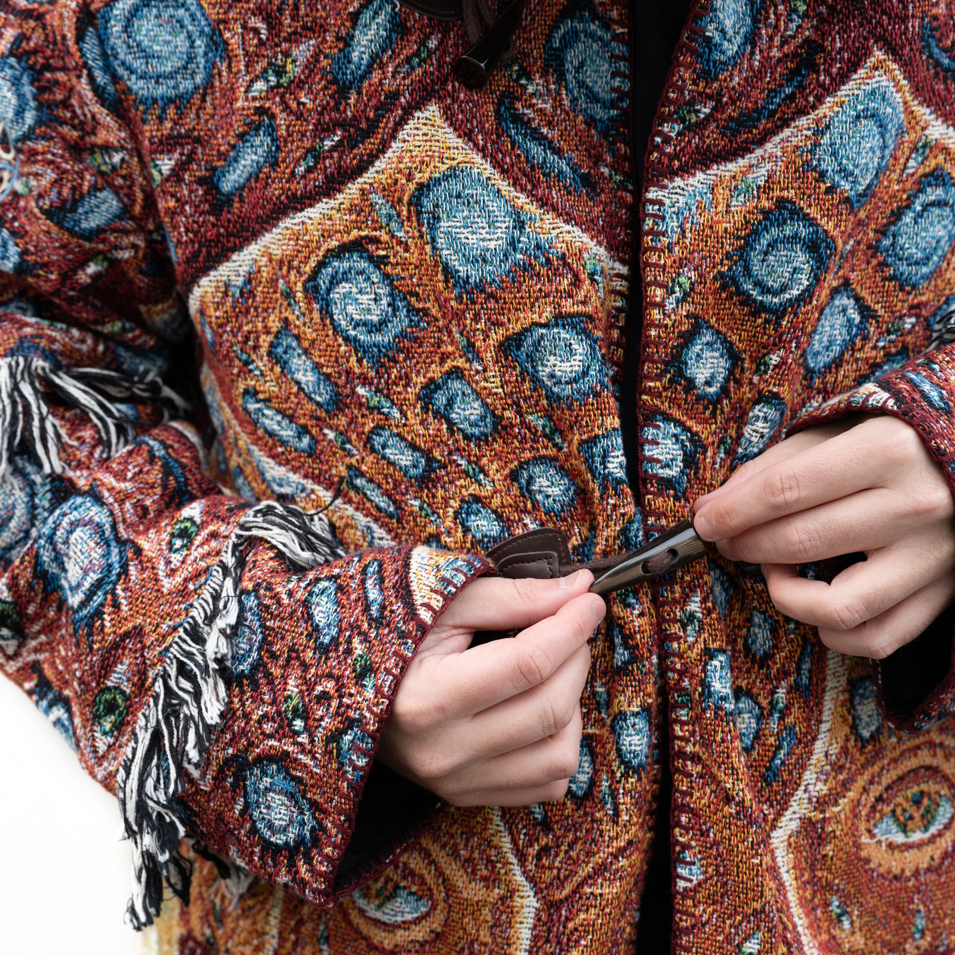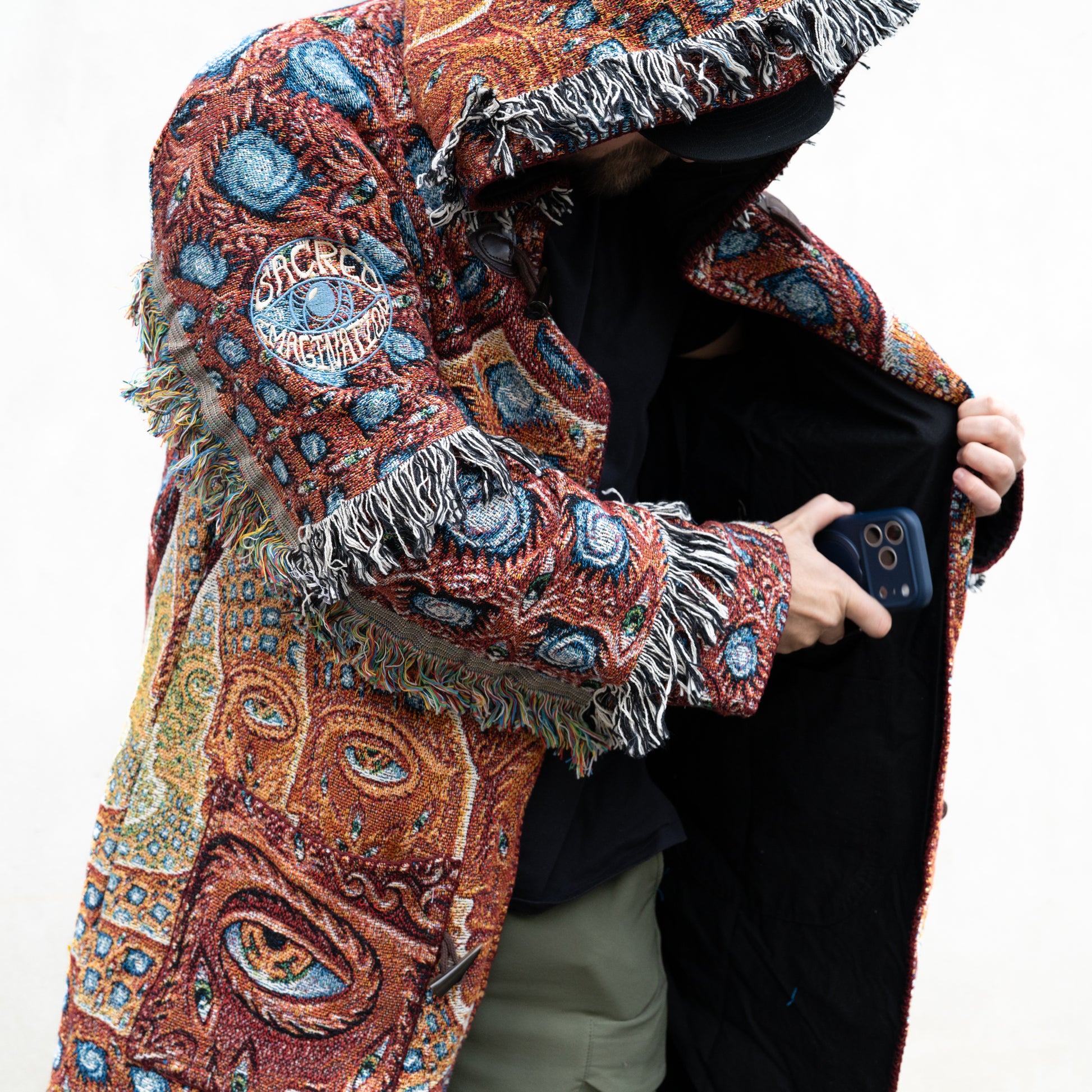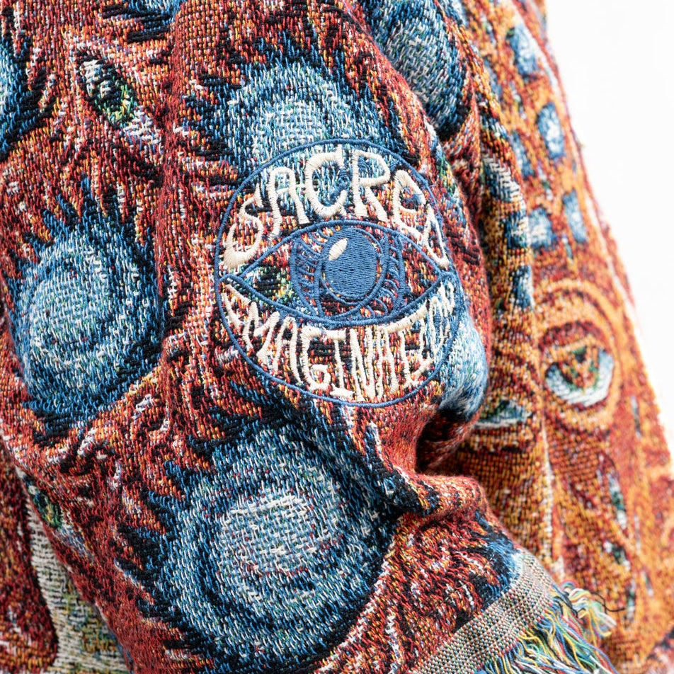 Each piece is as unique as the individual who wears it. Designed from our 100% cotton, woven Art Blankets. Handcrafted in collaboration with designer Sacred Imagination, these one-of-a-kind creations are meticulously made with care. No two are alike. Variations in patterns and logo coloration are to be expected.