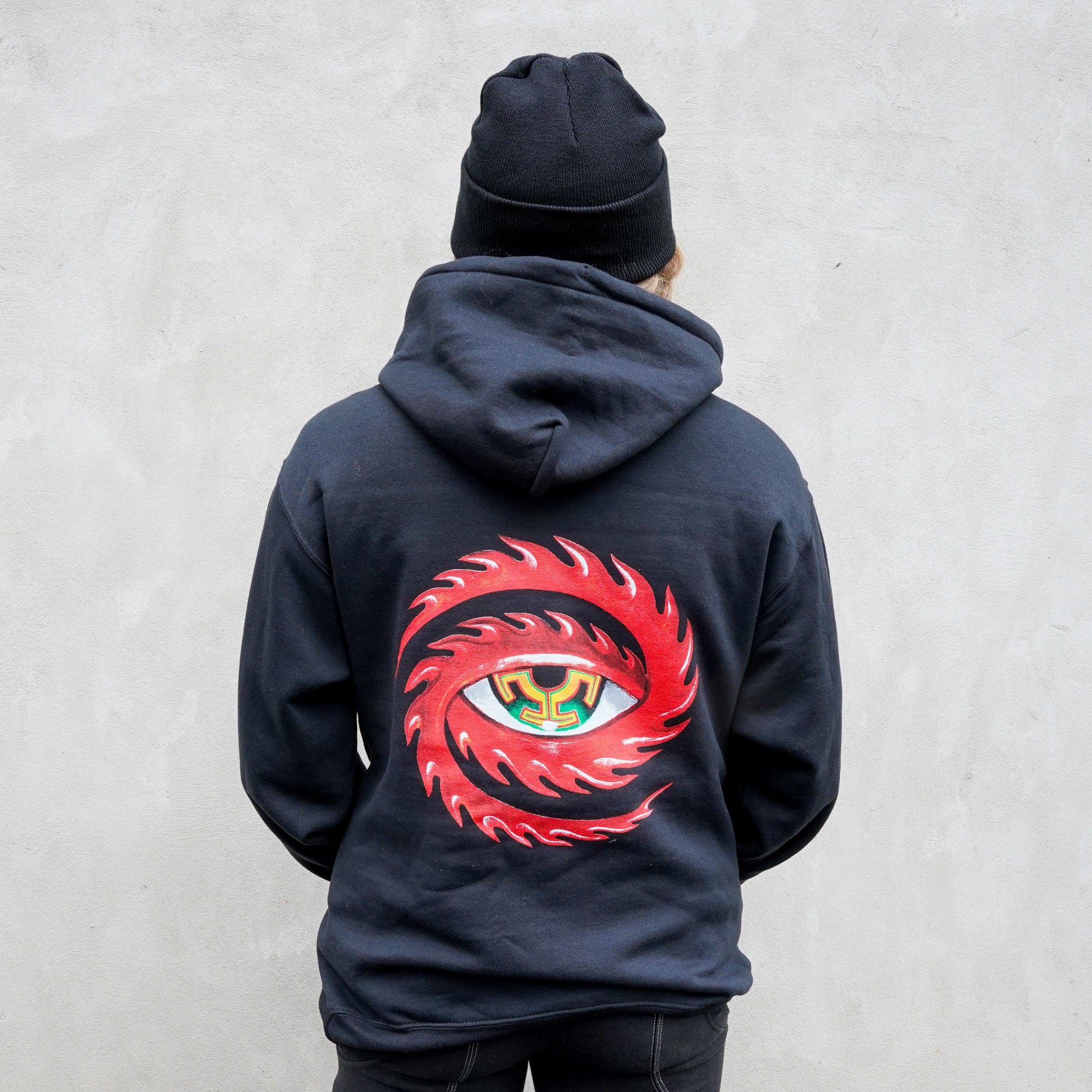 "The Net of Being establishes a new order of infinite space composed of and continuous with infinite consciousness. A fiery web of eyes and galaxies form a realm of total interconnectedness. A grid of Godheads implies mirror-like inter-reflectivity throughout space. The shared heart of each four-faced Quad God sheds an eerie underlight, as a ball of white light inside each head sources luminosity for a level above and beyond sight, a mesh evocative of the mythic Jewel Net of Indra of Buddhafields from the Avatamsaka Sutra." - Alex Grey